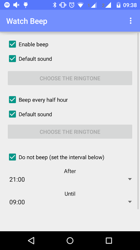 हर घंटे या हर आधे घंटे में beeps कि एक उदासीन app.