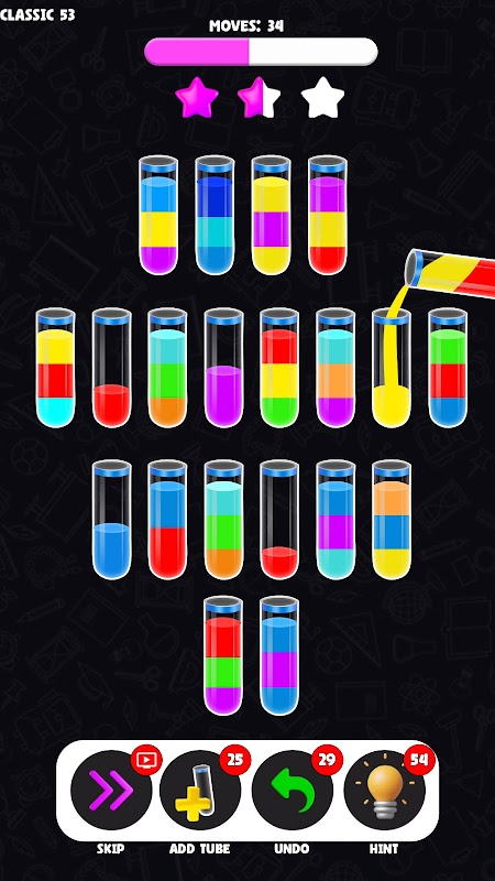 इस लत लगने वाले, दिमाग को परखने वाले पज़ल गेम में रंगीन वॉटर ट्यूब को सॉर्ट करें.