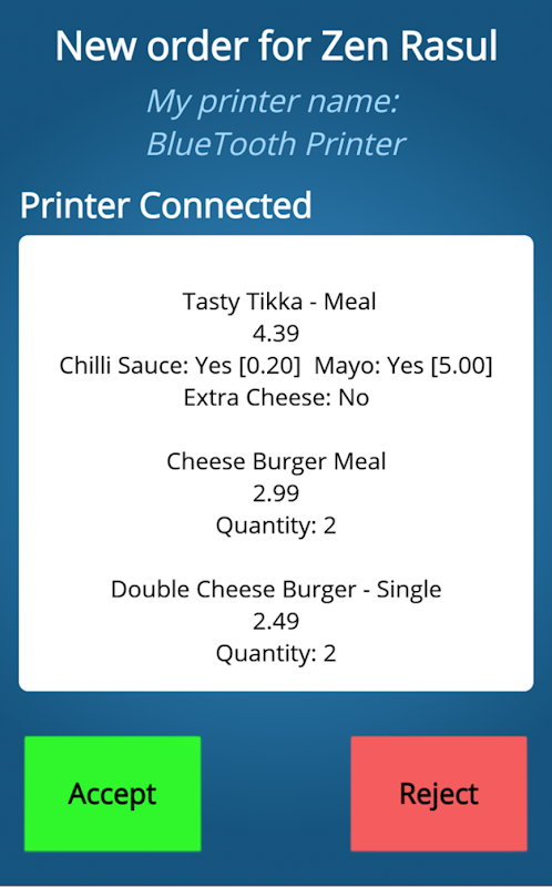 Respond to orders by ACCEPTING/REJECTING ORDERS direct within the app