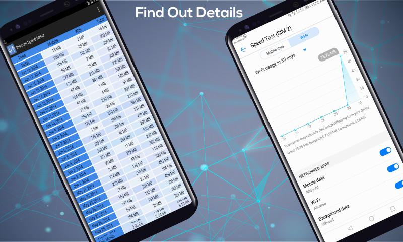 Internet speed meter application allows you to see real time internet speed in status bar. Change internet speed meter position on status bar. Shows Data usage per app. easily identify most data-hungry apps in your device. Track and monitor daily data and WiFi usage from notification. Monitors traffic data for the last 30 days, Daily, Weekly, and Monthly & Yearly. Internet Speed Meter and optimizer is also verify the download speed & upload speed in a short period of time. Internet Speed Meter shows your Internet connections upload & download speed on Status bar and Notification bar. Check Daily traffic usage in notification Section bar internet speedometer. Internet Speedometer test pro Graph to monitor last minute internet activity. Internet speed meter free - 4G speed test displays live internet speed in status bar. Internet speed meter test master and data manager Shows Data usage per app. easily identify most data-hungry apps in your device. Internet speed meter on status bar anywhere you want. It is helpful to track internet speed in notification bar, track application speed, internet data usage.