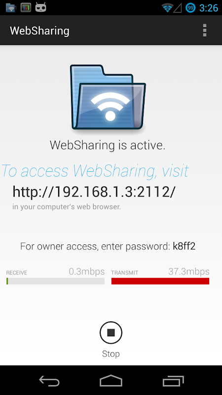 * गोपनीयता और प्रदर्शन: जब आप WebSharing उपयोग करके अपने डेटा कभी अपने वाई-फाई नेटवर्क को छोड़ देता है। यह स्थानान्तरण प्रदर्शन करने के लिए इंटरनेट / बादल का प्रयोग नहीं करता। अपने कंप्यूटर और फोन / गोली सीधे और निजी तौर पर बातचीत करेंगे। और क्योंकि अपने डेटा इंटरनेट पर नहीं जाना है, स्थानान्तरण स्थानीय नेटवर्क गति से होता है।