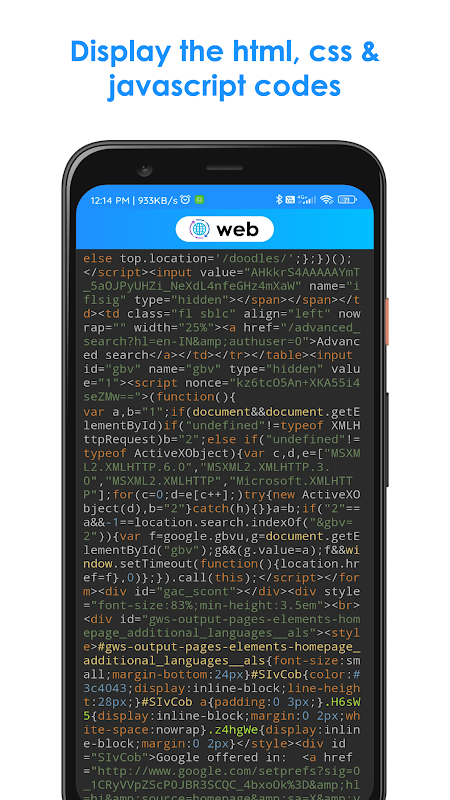 यह ऐप आपको अपनी पसंद की वेबसाइटों के सोर्स कोड को देखने में मदद करता है। आप कितनी भी वेबसाइट सोर्स कोड देख सकते हैं।