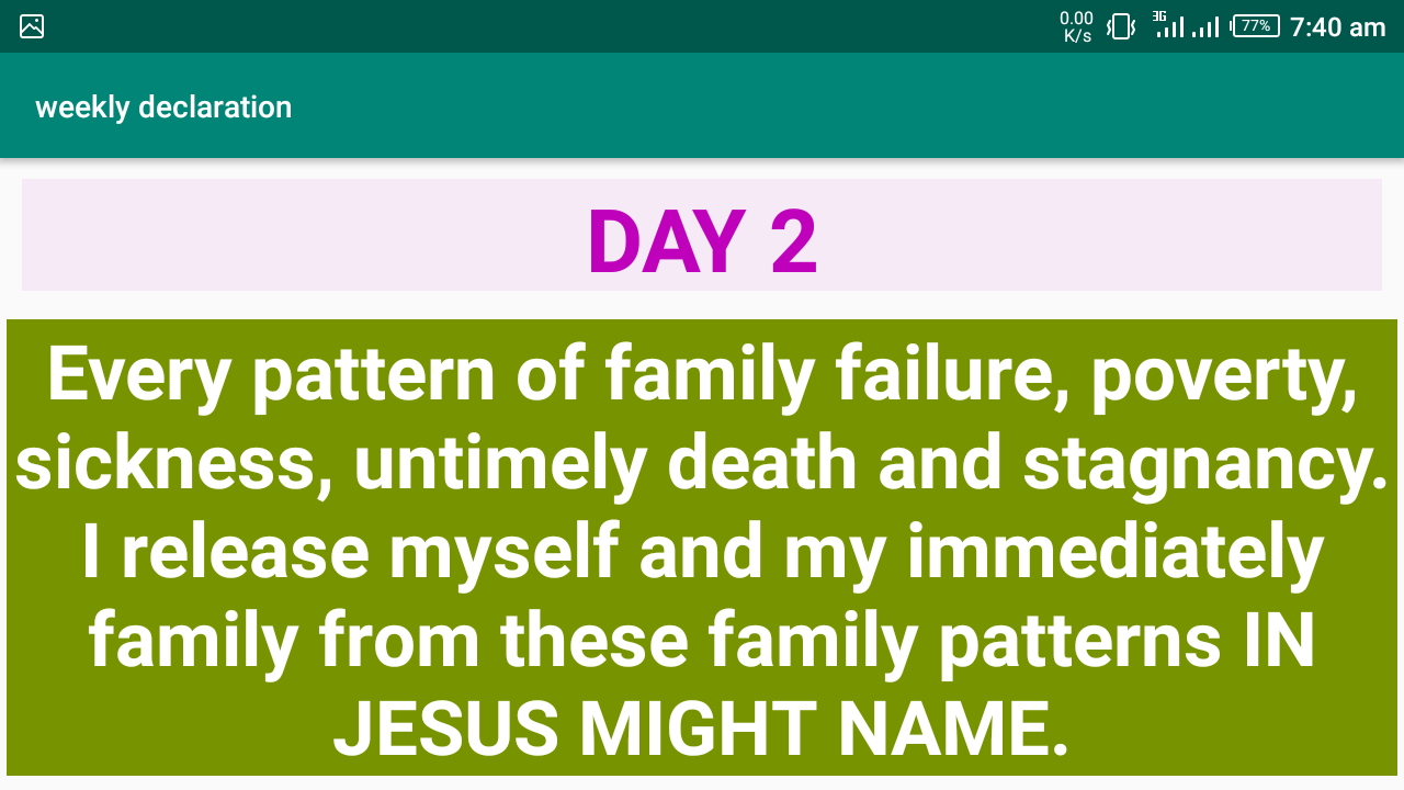 (Prayer app) Weekly declaration app also contains daily declaration for daily needs. It is time to start receive the goodness of God in your life.