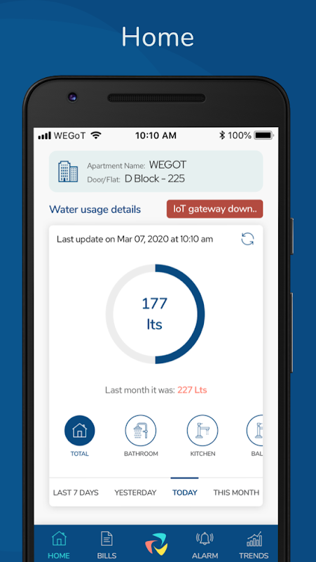 - आज, कल, पिछले 7 दिनों और चालू महीने में पानी की खपत की जाँच करें