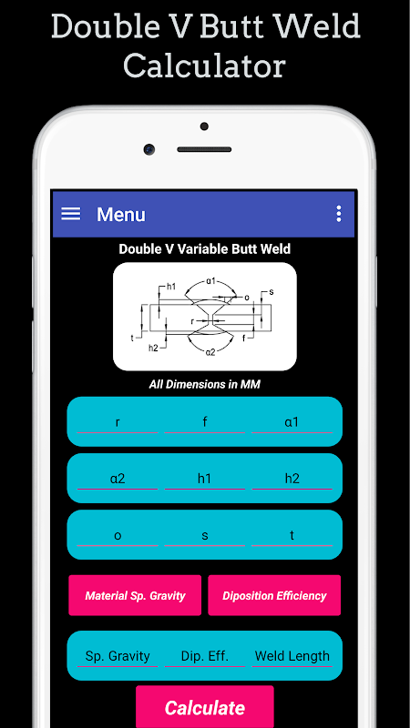 यह ऐप फैब्रिकेशन में प्रयुक्त विभिन्न प्रकार के जॉइंट के लिए वेल्डिंग मटेरियल रिक्वायरमेंट कैलकुलेशन और वेल्डिंग कॉस्ट कैलकुलेशन के लिए बहुत उपयोगी है।