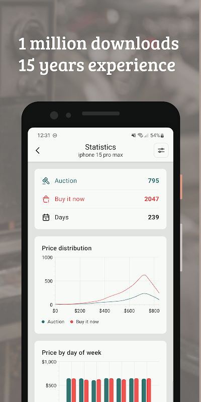 15 वर्षों से भी ज़्यादा समय से यह ऐप आपको पिछले हफ़्तों में सफलतापूर्वक बेची गई वस्तुओं की वास्तविक औसत कीमत निर्धारित करने में मदद करता रहा है। अब इसे पूरी तरह से नया रूप और नया डिज़ाइन दिया गया है।