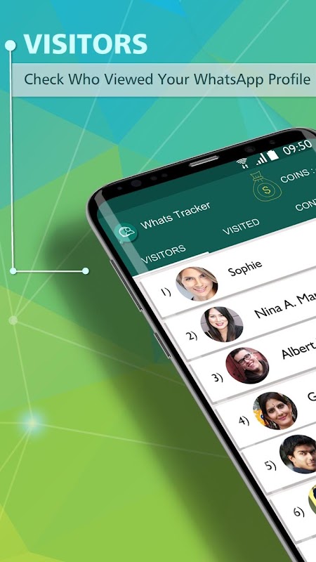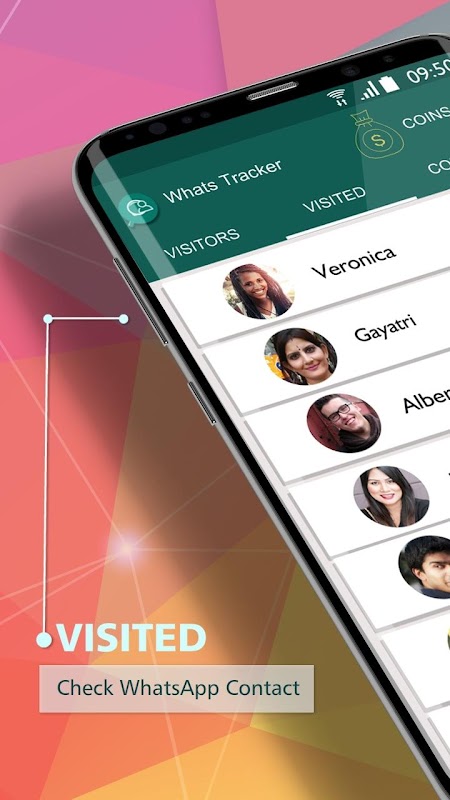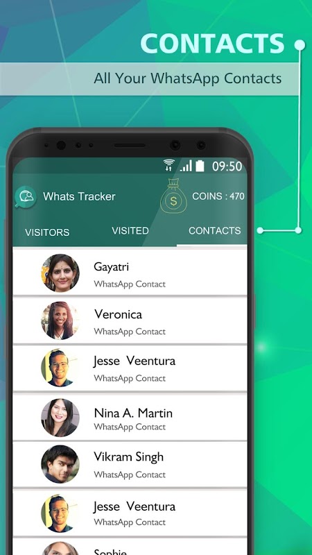😎 Visited: If you Visit someone else’s profile then those contacts will be shown in your Visited list. If you visited your friend's profile, then you will be appeared as a Visitor in your friend’s Visitor list. Thats how Whats Tracker app works.