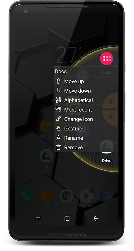 इशारे - गति इशारों को लागू करें और ट्रिगर से सीधे आइटम शुरू करें। किसी भी ऐप, शॉर्टकट, संपर्क या टूल के लिए एक इशारे का चयन करें और इसे एक त्वरित गति के साथ लॉन्च करें।