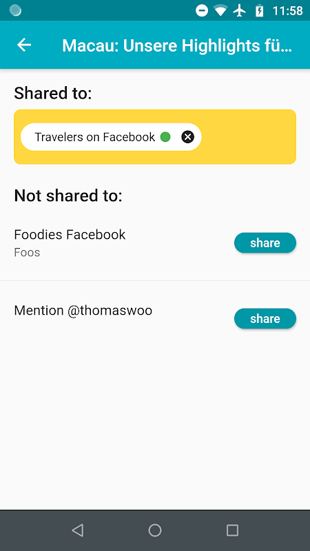 Plan your shares by adding targets (facebook groups, twitter accounts, instagram,...) and add useful information.