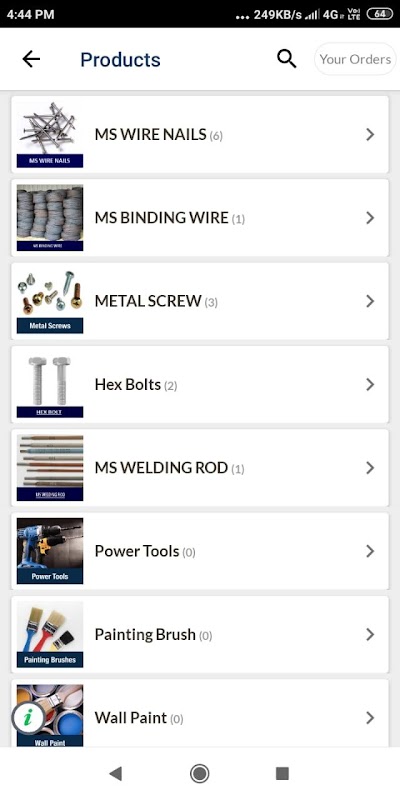 This App is Specially design for Business to Business (B2B) We Deal in Hardware Item Like Wire Nails, Screw, Nut, Bolt,Hook, Welding Rod,Paint, Brush all types of Hardware Parts