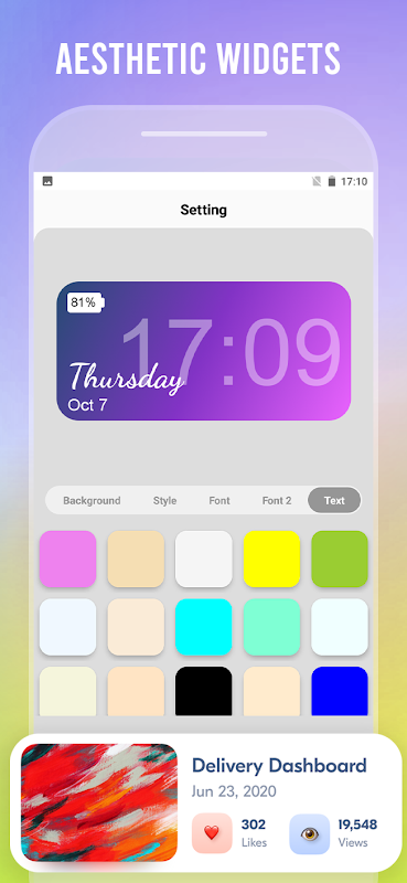 Customize every gadget aesthetic. Add pictures to your widgets, alter their text style, make your own color-conspire, thus considerably more. Successive updates continually add new widgets you'd love. With Color Widgets, there are no restrictions to redoing your Home Screen! Here is a brief look at our widgets: