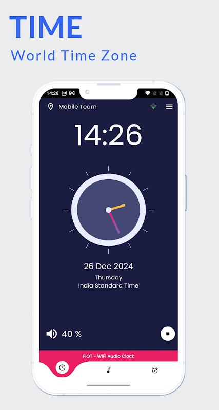 वाईफाई ऑडियो क्लॉक यूटीसी के साथ समन्वयित होती है, जो सटीक समय और कस्टम अलार्म प्रदान करती है।