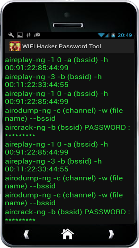 Wifi Password Hacker Prank simula el proceso de cortar cualquier red inal?mbrica con el teléfono. S?lo una de las claves para romper el wifi y hackear todas las contrase?as. As? que es una aplicaci?n divertida utilizado para broma a tus amigos y divertirse. Su amigo ser? sorpresa ver esta cosa incre?ble sucede. Usted va a mirar impresionante y profesional.