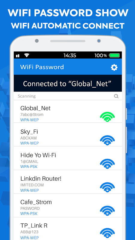 वाईफाई पासवर्ड कुंजी शो, वाईफाई स्पीड मास्टर और ऑटो कनेक्ट