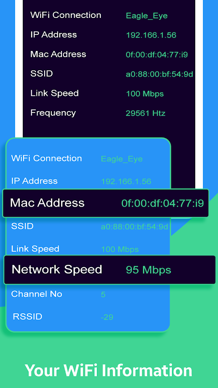 - वाईफाई डिवाइस विक्रेता आईडी नेटवर्क आवृत्ति, चैनल रेटिंग और भी बहुत कुछ।