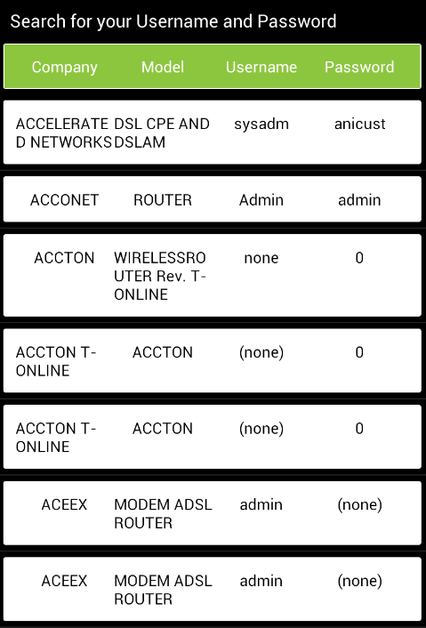 You can find default passwords of a lot of WiFi routers in the application.