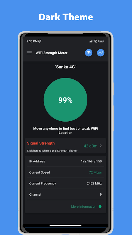 - वास्तविक समय में अपनी वर्तमान सिग्नल शक्ति की निगरानी करें।
