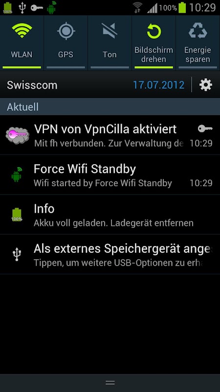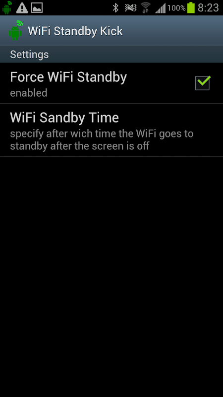 If the "WiFi Standby Policy" on your phone doesn't work and the WiFi stays always active during standby mode (as on my SGS3) then this little App helps by forcing the WiFi off when the device enters the standby mode - and on again when the display is switched on again.