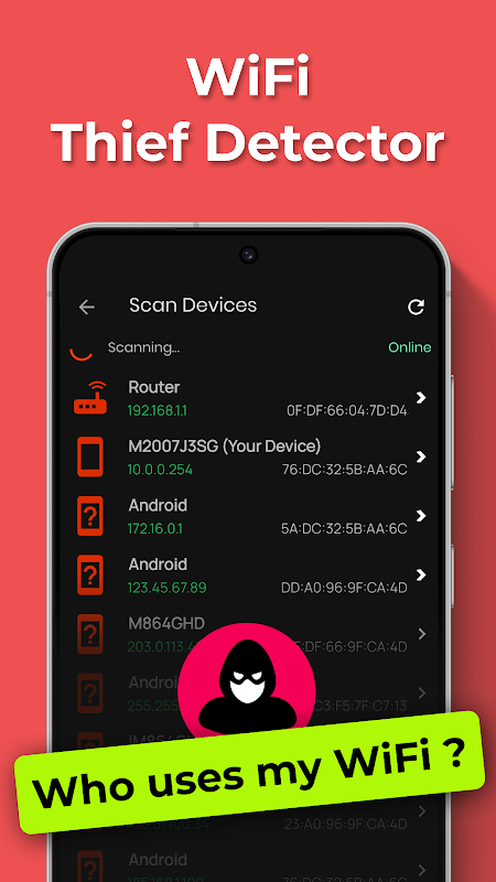 वाईफ़ाई चोर डिटेक्टर के साथ आज ही अपने वाईफ़ाई को सुरक्षित करें!