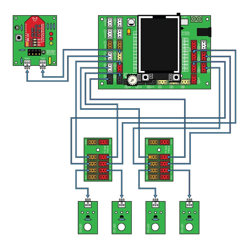 2 ZX-एलईडी के साथ पिन 12 (A11) और 21 (ए 3) कनेक्ट