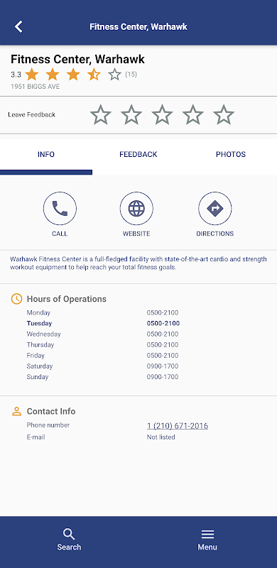 Wing Feedback also provides information about military base or installation services – hours of operation, contact information, and more.