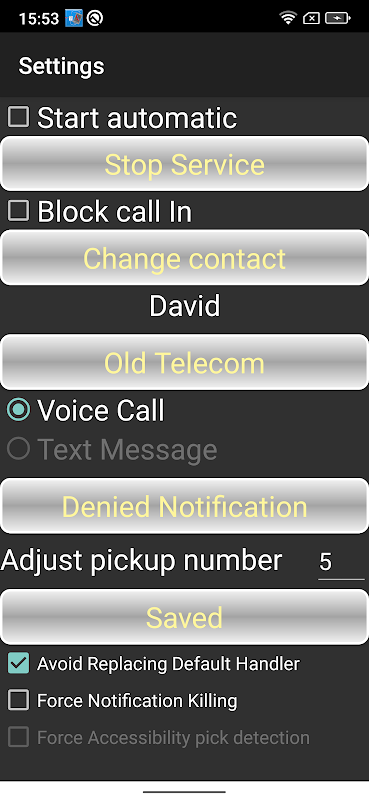 सेटिंग्स पैनल अलार्म सेंसर की स्थिति का परीक्षण और ट्यून करने की क्षमता दे रहा है। सेटिंग्स के दौरान कोई फोन कॉल डायल नहीं किया जाता है। जैक कनेक्टर में अधिकतम चार सेंसर लगाए जा सकते हैं लेकिन उपलब्धता फोन मॉडल और एंड्रॉइड वर्जन के अनुसार भिन्न हो सकती है। वैकल्पिक सेटिंग फ़ोन के लॉक होने या निष्क्रिय होने पर कार्य करने में मदद करेगी।