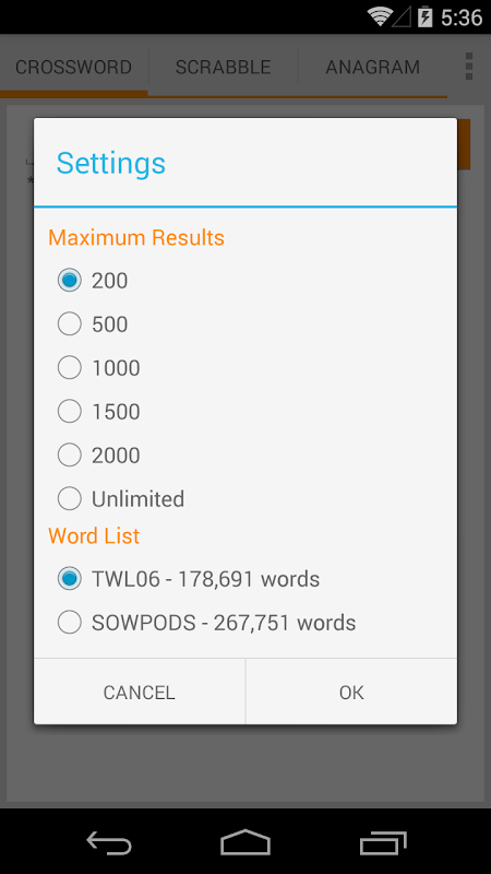 TWL06 या SOWPODS शब्द सूची का उपयोग करता है।