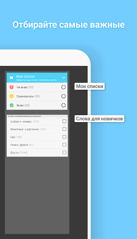 आप सीखे गए शब्दों की जांच कर सकते हैं और उन्हें सीखने की सूची से हटा सकते हैं।
