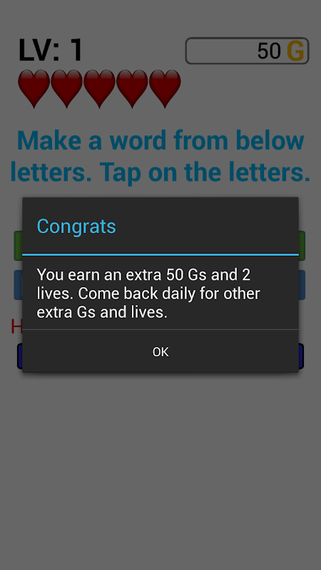 When making a correct word, you will earn tokens (Gs).