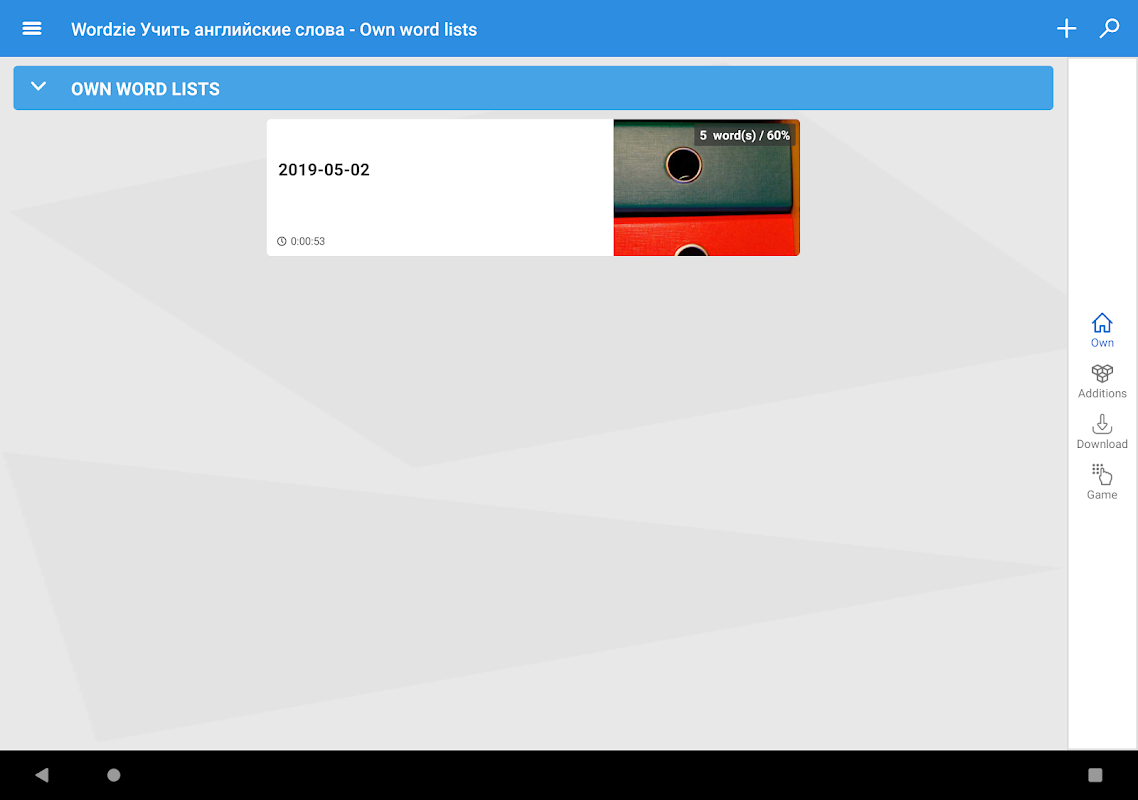 The program teaches and asks English words and expressions by special word cards. Not only Russian-English word pairs but the example sentences also have word cards read out by native speakers.