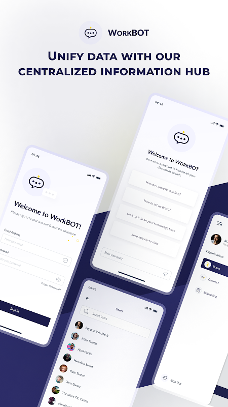 वर्कबॉट मोबाइल ऐप के साथ अपने डेटा को सशक्त बनाएं - एक सहज संवादात्मक एआई चैटबॉट जो आपके संगठन के भीतर महत्वपूर्ण जानकारी को प्रबंधित करने और उस तक पहुंचने के तरीके में क्रांति लाते हुए, समझता है, सीखता है और कार्रवाई योग्य कदम उठाता है।