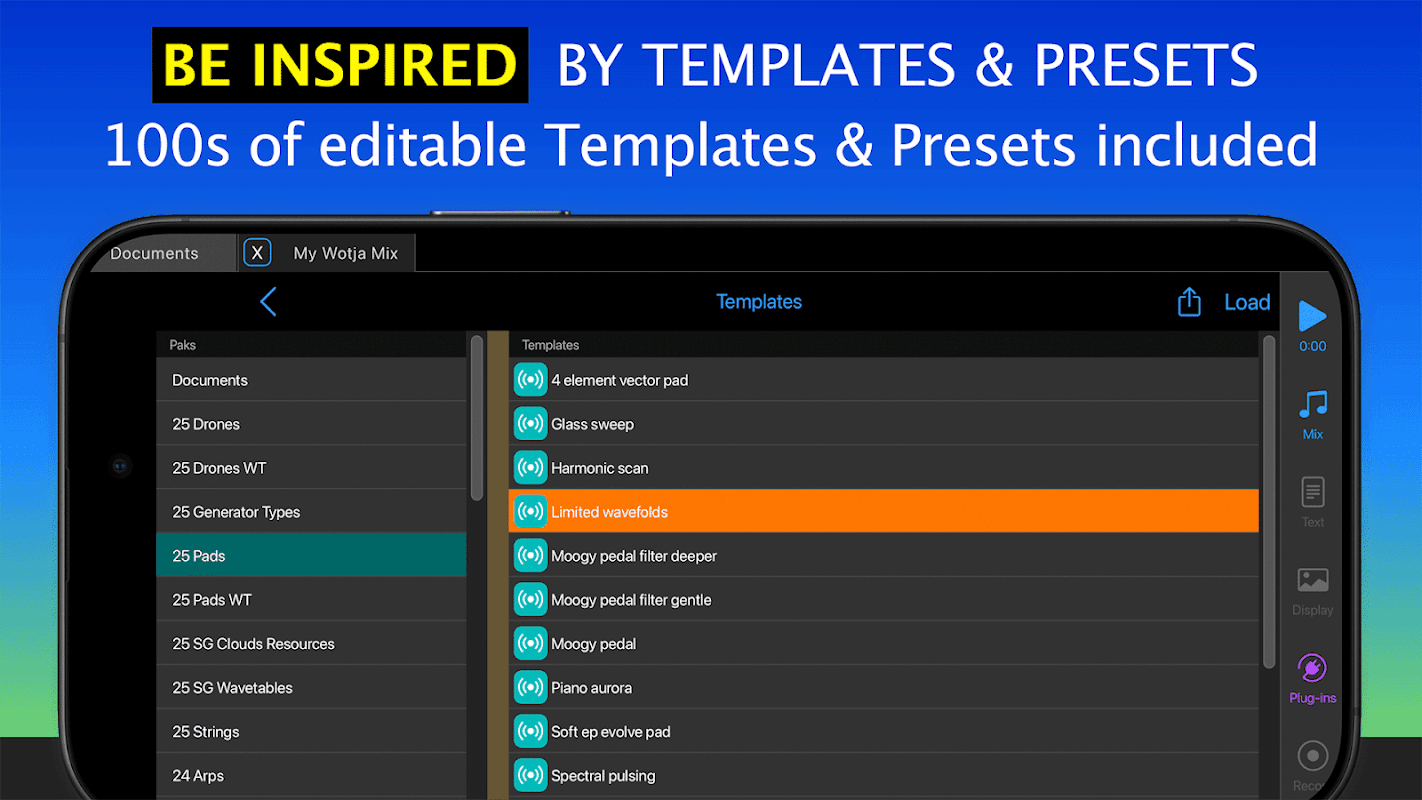 • सैंपल और ग्रैन्युलर, मैक्रो ऑसिलेटर 1 और 2, रिवर्ब 2XL, पिच शिफ्टर और कई अन्य सिंथ और FX इकाइयों के साथ वोटजा ऑडियो इंजन (WAE)