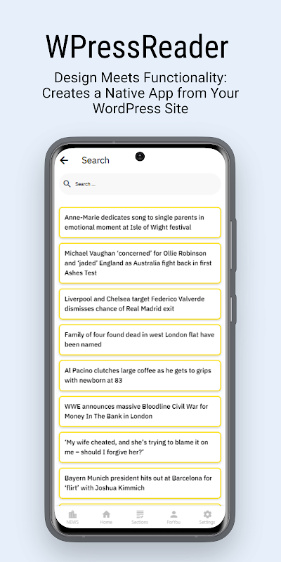 6. निर्बाध सामग्री समन्वयन: अपने ऐप की सामग्री को सहजता से अद्यतन रखें। WPressReader आपकी वर्डप्रेस साइट के साथ सहजता से समन्वयित होता है, यह सुनिश्चित करता है कि आपके द्वारा किया गया कोई भी परिवर्तन, परिवर्धन या अपडेट तुरंत ऐप पर दिखाई दे।