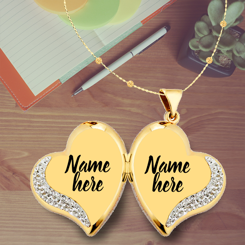 आपके नाम और प्यार के साथ सुंदर लॉकेट तस्वीर में अपने प्रिय लिखें