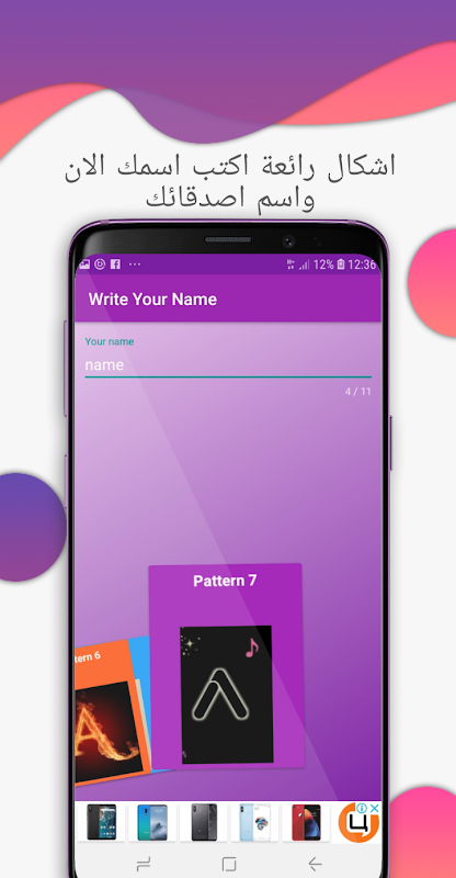 يعمل تطبيقنا باخد صورة من كل حرف في شكل جميل ا عليك سوي اختيار الشكل الذي يعجبك وكتابة اسمك به بعد دلك ستجد الصورة جاهز قم بضغط على ازر حفض وستجد الصورة في الوم الصور قم بارسالها لاصدقائك