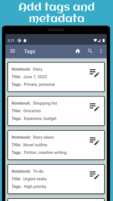 • अपने नोट्स खोजें और अपने टैग और मेटाडेटा को जल्दी और आसानी से प्रबंधित करें।
