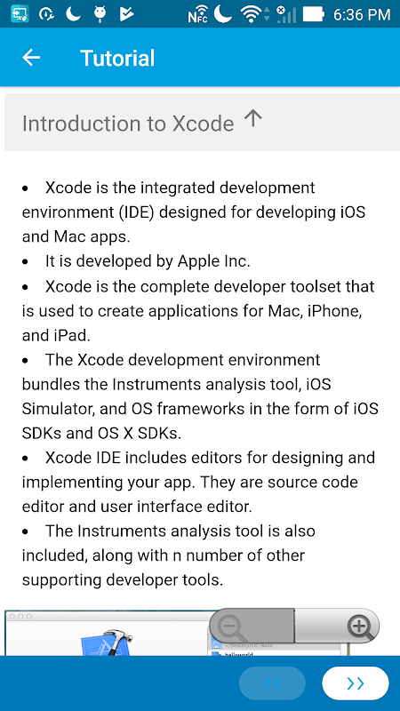 You have limited access to the content provided. For full access to the content, please login and purchase this application. This app provides a quick summary of essential concepts in Xcode by following snack sized chapters: