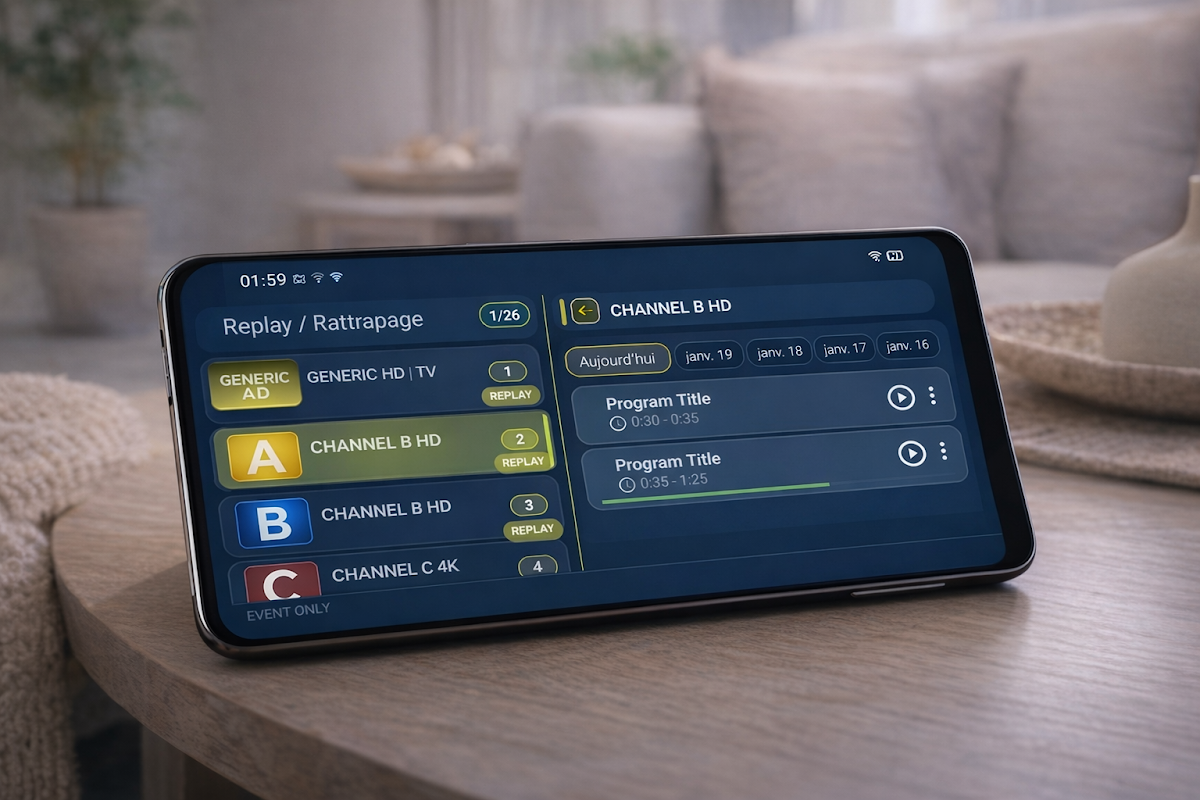 • कैच-अप / रीप्ले (यदि आपका प्रदाता इसे सपोर्ट करता है)