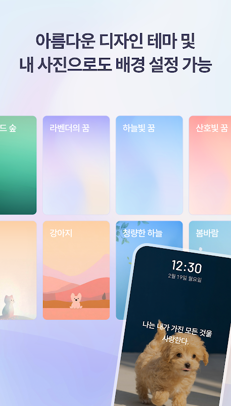 ● फ़ोटो पृष्ठभूमि: अपना व्यक्तिगत आत्म-पुष्टि कार्ड बनाने के लिए एक फ़ोटो को अपनी पृष्ठभूमि के रूप में सेट करें।