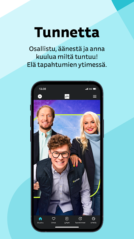 Yle ऐप के साथ, आप स्वयं भी इन आयोजनों का हिस्सा बन सकते हैं: अपने पसंदीदा UMK के लिए वोट करें या यूरोविज़न और लिन्ना समारोहों के दौरान दूसरों के साथ चैट करें। आप Elämäni biisi के घरेलू मैच, मौसम और टेक्स्ट टीवी की जानकारी भी यहाँ पा सकते हैं।