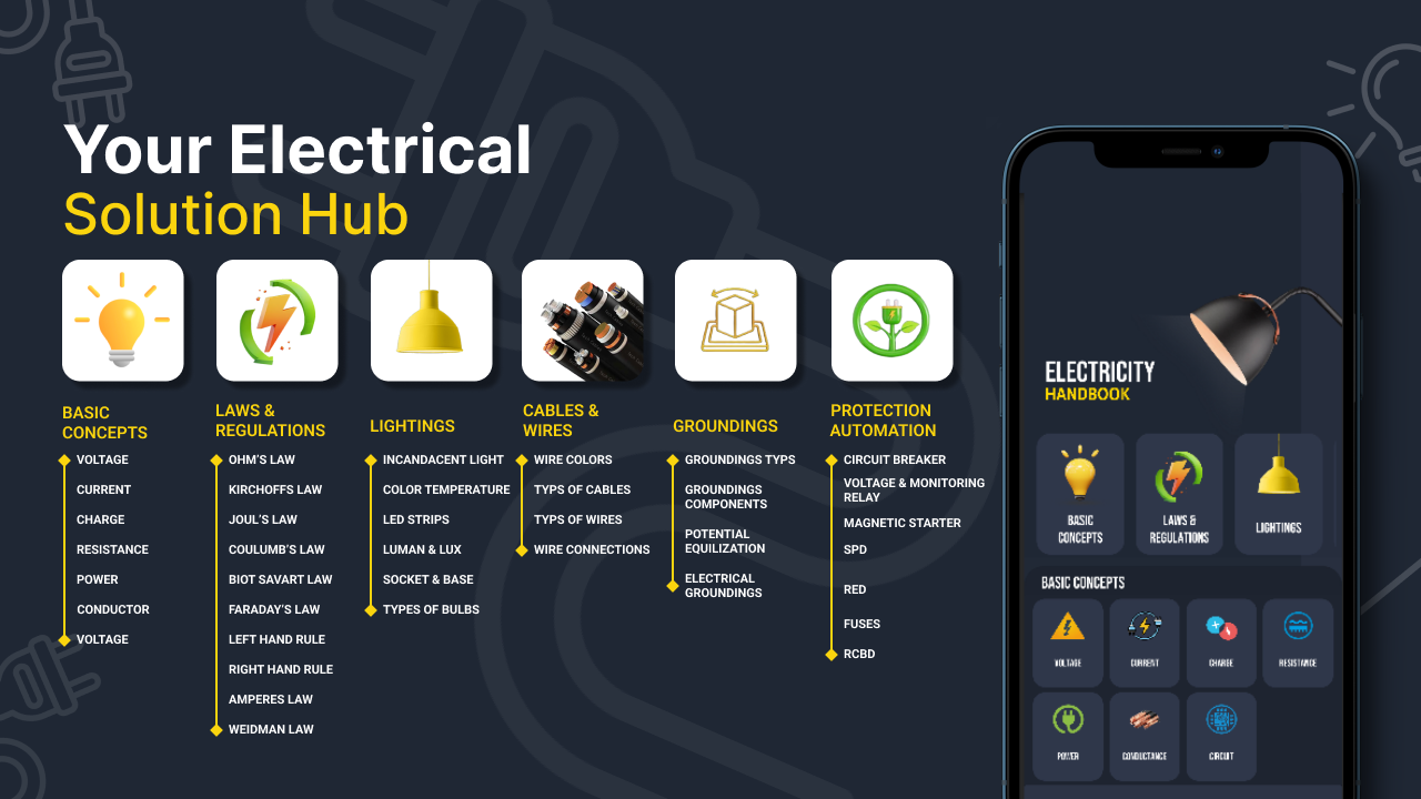 इलेक्ट्रिकल प्रोफेशनल्स के लिए इलेक्ट्रीशियन ऐप, जिसके पास सभी इलेक्ट्रिकल समाधा
