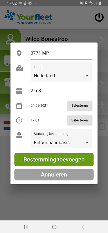 Bestemmingsstatus. Ook kan de chauffeur een status aangeven
