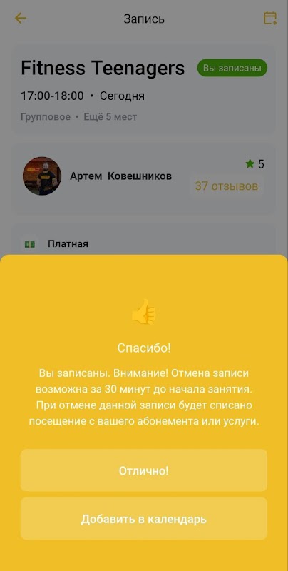 Посмотреть актуальное расписание тренировок;