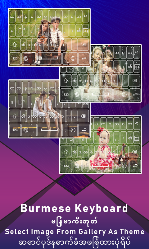 The Myanmar Keyboard Theme is the new way to use your default mobile keyboard with multiple colors, beautiful keyboard backgrounds, emoji keyboard for mobile. This is best keyboard theme that likely compatible with android keyboard and best app to customize keyboard with new look. Download latest colorful theme keyboard with keyboard wallpaper to give change your phone look into a new way. Beautiful themes, color sticker keyboard, emoticon and smiley emoji keyboard. Free for download, colorful keyboard for Android theme, keyboard theme for chatting, color keyboards for android, color changing keyboards, colorful keyboard themes.