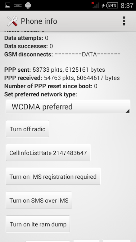 बस यूँ ही रेडियो सेटिंग्स और बैटरी जानकारी की तरह छिपा सेटिंग खोलने के लिए बटन नल।