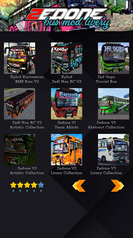 इस एप्लिकेशन में बुसिड में बुसिड के लिए नए ज़ेडोन मॉड्स का सबसे पूरा संग्रह है। आप विभिन्न मौजूदा ज़ेडोन बुसिड मॉड मॉडल पा सकते हैं। हमारे पास एक शांत डिजाइन के साथ ज़ेडोन akbda mod livery V1 का संग्रह है। इसके बाद बहुत सारे लाइवरी विकल्पों के साथ बुसिड ज़ेडोन v2 मॉड है। फिर नवीनतम बहुत अच्छा ज़ेडोन v3 बस मॉड लाइवरी है।