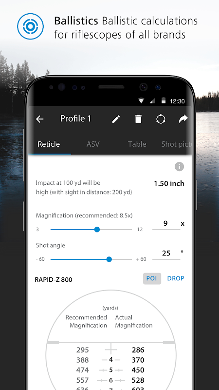 अपने परिणाम एएसवी डेटा सहित शाही और मीट्रिक इकाइयों में तालिकाओं और रेटिकल्स के रूप में प्राप्त करें। अन्य निर्माताओं के राइफलस्कोप के लिए, बैलिस्टिक तालिका का उपयोग करें।