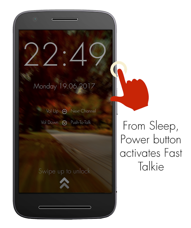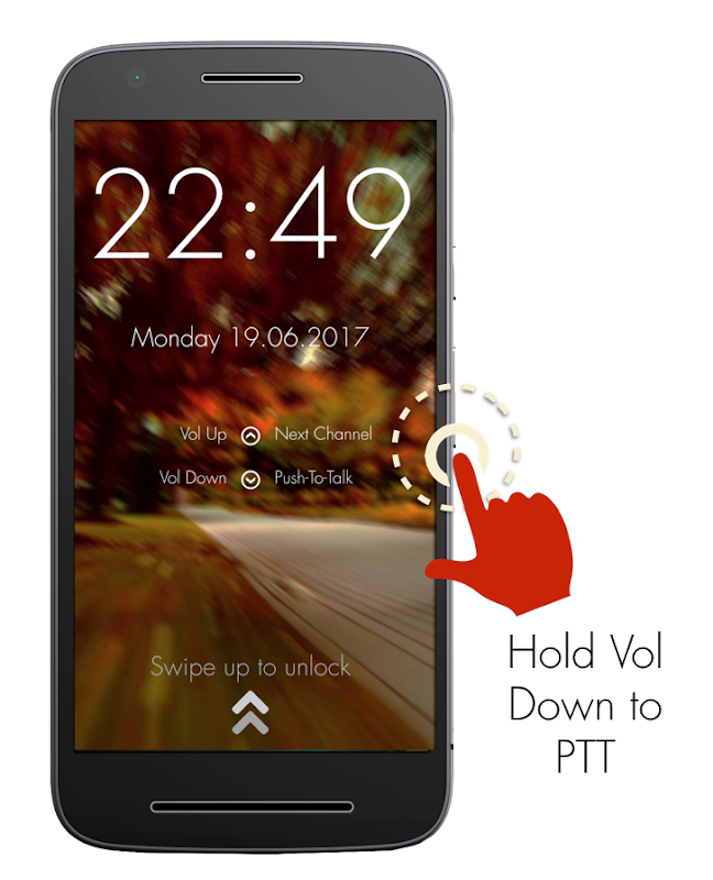 2: पहले चुने गए Zello/VoicePing चैनल में वॉल्यूम डाउन/कस्टम बटन को PTT पर दबाए रखें