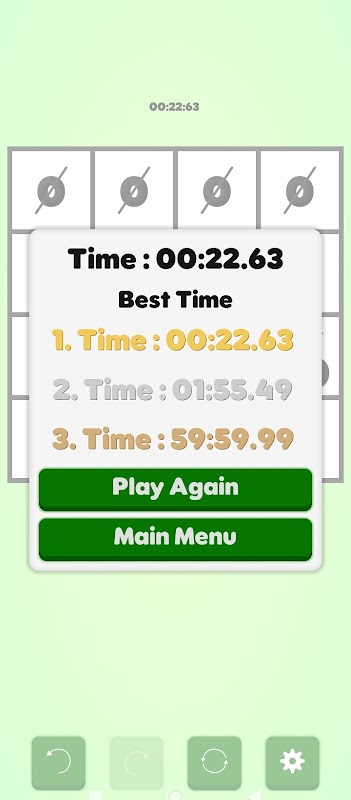 आप अपनी चाल को 5 बार पूर्ववत और पुनः कर सकते हैं। और आप चुनौती के लिए टाइमर को छिपा सकते हैं और पूर्ववत/पुनः करें बटन को अक्षम कर सकते हैं। आप किसी भी समय उसी क्रम की संख्या के साथ अपने ग्रिड को पुनः आरंभ कर सकते हैं लेकिन तीसरे पक्ष का विज्ञापन दिखाया जाएगा।