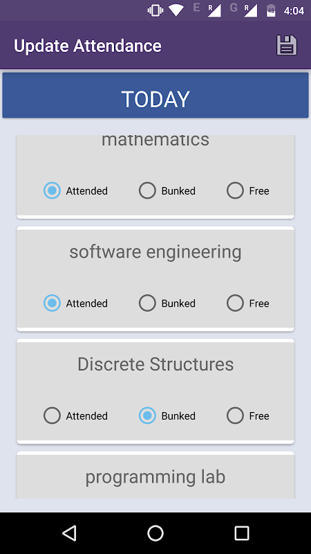 Estimate your attendance daily by auto notification daily at 4 pm or manually for each subject